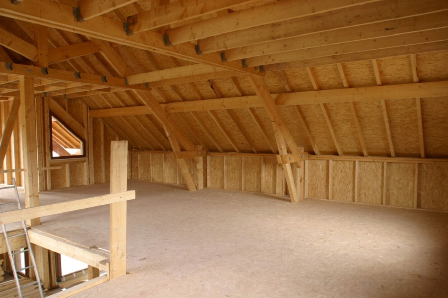 - une plateforme composée par exemple de panneaux à base de bois (dalle aggloméré, dalle OSB, contreplaqué), ou d’un plancher en lames de bois massif posées directement sur les solives ou encore sur des lambourdes intermédiaires.