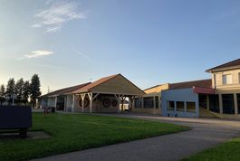 Belleville Meurthe et Moselle - Abri bois Abri école primaire L’école élémentaire de Belleville reçoit un nouveau préau en structure bois. L’ensemble est constitué de portiques en lamellé-collé douglas stabilisé par des contre-fiches et supportant la charpente industrialisée. Lire la suite