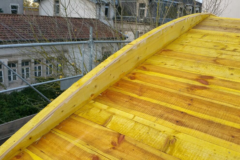 Charpente traditionnelle - Nancy ( Meurthe et Moselle ) Rénovation de la Chapelle Maringer sur le site hospitalier Villemin Maringer Fournier à Nancy.Une structure a été crée afin de ne supporter que la couverture zinc.Ferme chevron assemblée à mi-bois avec entrait retroussé boulonné, qui prend appui sur une poutre en lamellé-collé qui forme le chéneau encastré.Lien sur l'histoire de la Chapelle néogothique Maringer : un patrimoine méconnuhttp://orthodoxenancy.fr/fr/la-chapelle-neogothique-maringer-un-patrimoine-meconnu/